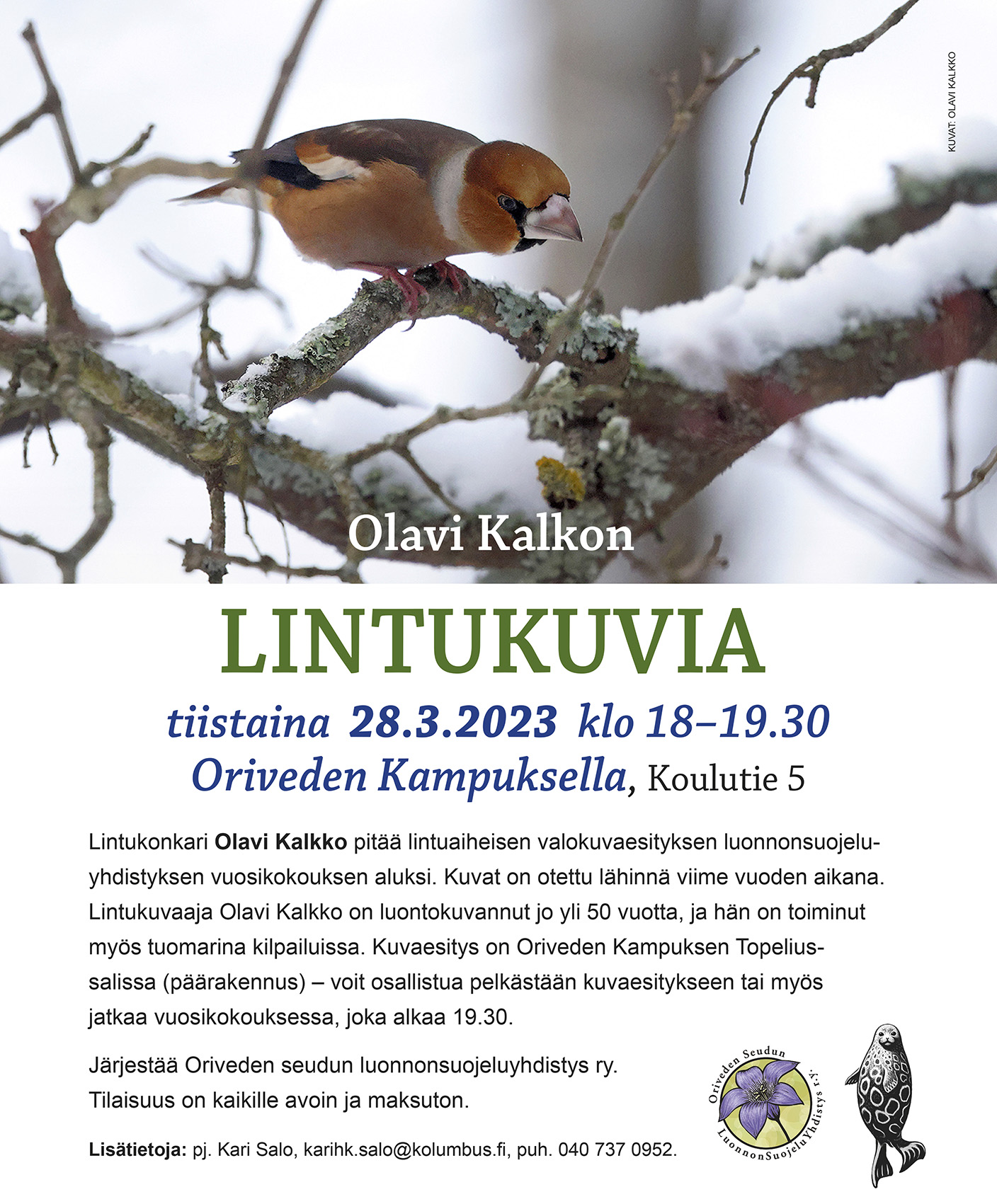 Olavi Kalkon LINTUKUVIA tiistaina Oriveden Kampuksella, Koulutie 5